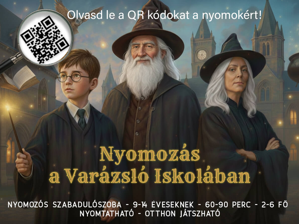 A Varázsló Iskola egy különleges, otthon játszható hibrid szabadulószoba játék, amely nyomtatható feladatlapokkal és QR-kódokon keresztül elérhető hangos tartalmakkal vezeti végig a gyerekeket egy varázslatos történeten.